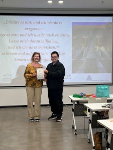 Eine große Freude war für mich auch ein mehrjähriger unverbindlicher Beratervertrag, welche ich von der College-Leitung überreicht bekommen habe, um weitere Impulse zu geben. Dankeschön an die Schulleitung, welche selbst auch vorbildlich an den Workshops teilgenommen hat und die tolle Mitarbeit der Lehrer:innen! Und ein großer Dank geht auch an unsere Übersetzerin Valentina und den SGAEE e.V, welche diesen fachlichen Austausch und das Sammeln von gegenseitigen Erfahrungen erst ermöglicht hat. Und nicht zuletzt unserem Bundesschatzmeister Zhenan Li, der durch sein vorbildliches Talent zum Netzwerken dies überhaupt erst ermöglicht hat!